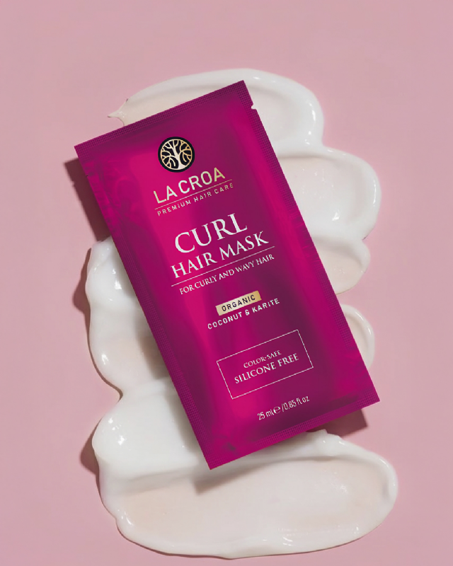 The La Croa Curl Mask is formulated for intensive repair and deep hydration of curly and wavy hair. A blend of organic coconut oil, shea butter, keratin, and free amino acids strengthens the hair fibre, restoring shine and vitality. Free from allergenic fragrances. Compatible with the Curly Girl Method (CGM).