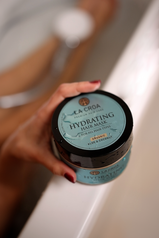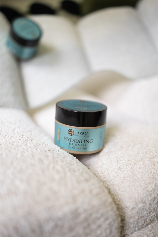 The La Croa Hydrating silicone-free hair mask deeply hydrates and helps repair hair. Enriched with organic argan, coconut, and sesame oils, along with organic aloe vera, it provides intensive care while restoring hair’s natural softness and shine. Its gentle formula, free from allergenic fragrances, makes it suitable for all hair types, including sensitive scalps. Does not weigh hair down.