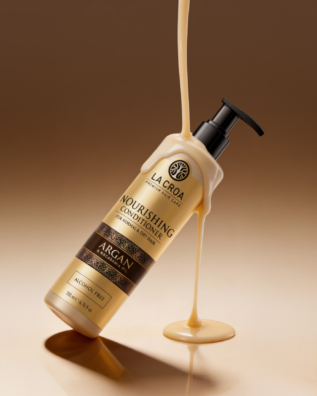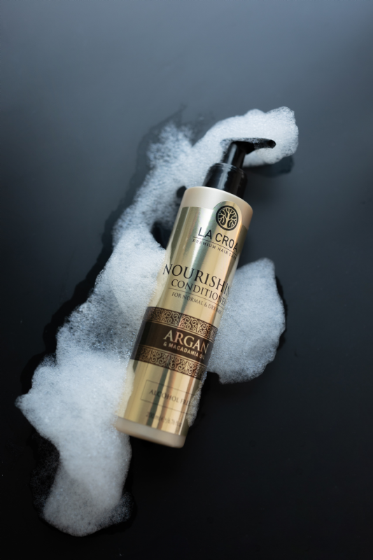 The La Croa Nourishing Conditioner, formulated for normal and dry hair, nourishes, hydrates, and softens the hair fibre without weighing it down. The formula, enriched with argan and macadamia oils, penetrates the hair fibre, restores its structure, and restores smoothness, softness, and a silky shine. Ideal for daily use, leaving hair manageable and easy to style.