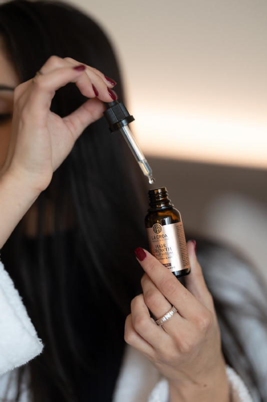 If you notice that your hair becomes oily more quickly, or if this method suits you better, you can also apply the serum before shampooing. Apply it to the scalp, massage for 2-3 minutes, then wash your hair with the La Croa Hair Growth shampoo for best results.