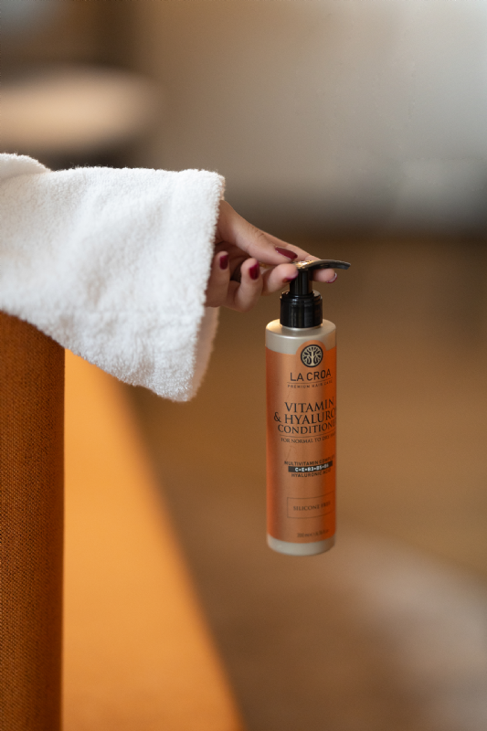 La Croa Vitamin & Hyaluron regenerator bez silikona, sadrži vitamine C, E, B5, B3 i B6 te hijaluronsku kiselinu, pružajući kosi intenzivnu hidrataciju i energiju bez otežavanja. Regenerator je pogodan za normalnu i suhu kosu.
